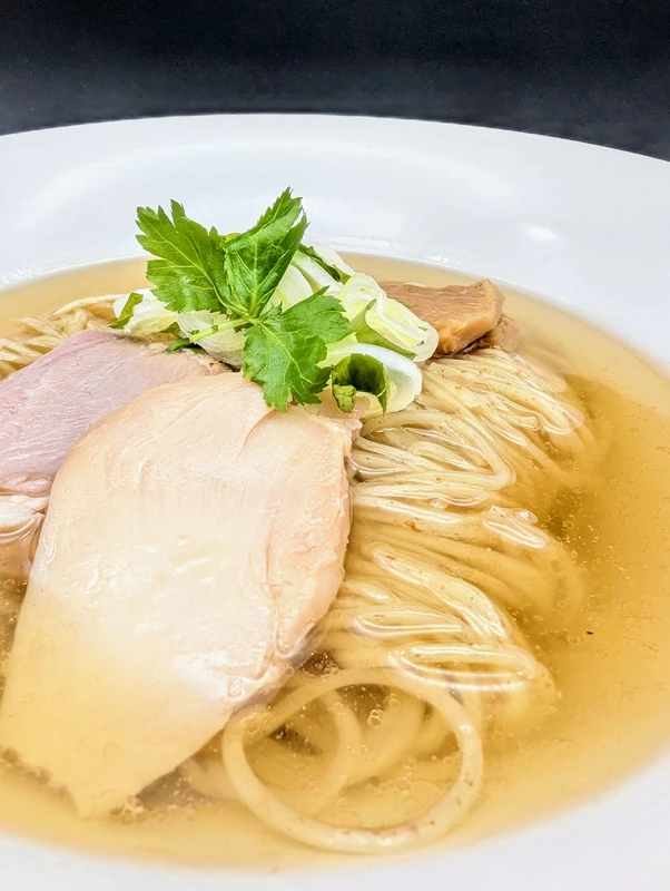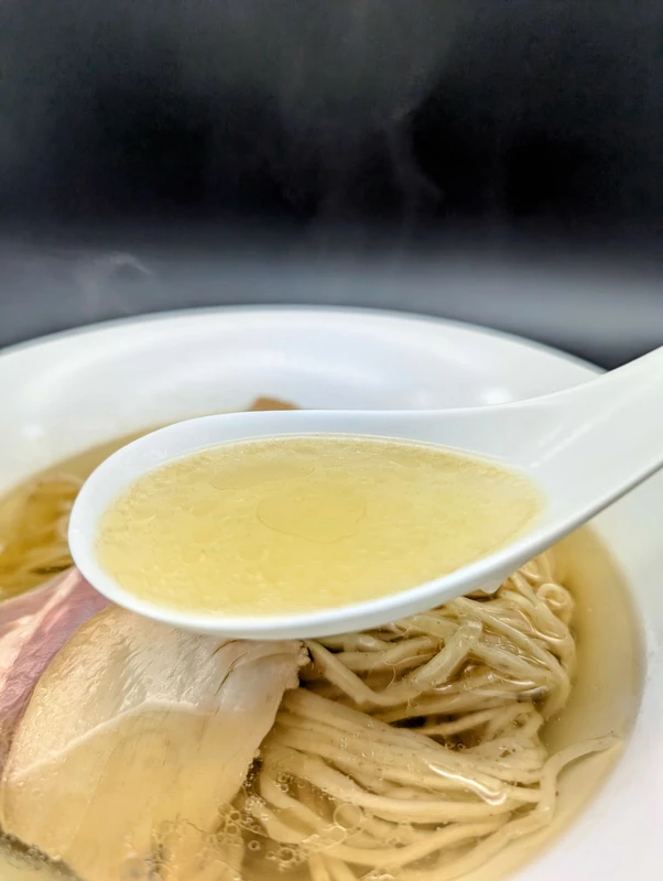 スープはアニマルオフのスッキリと澄んだ魚介系淡麗塩清湯。