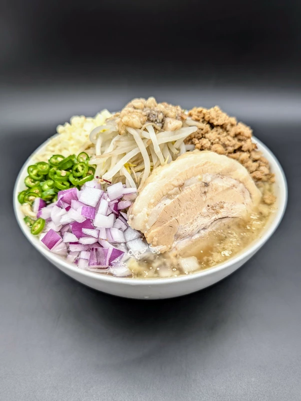 一般的な二郎インスパとは一味違う、シークヮーサーと青唐辛子によるトロピカルでさっぱりとした味わいが楽しめると思います。