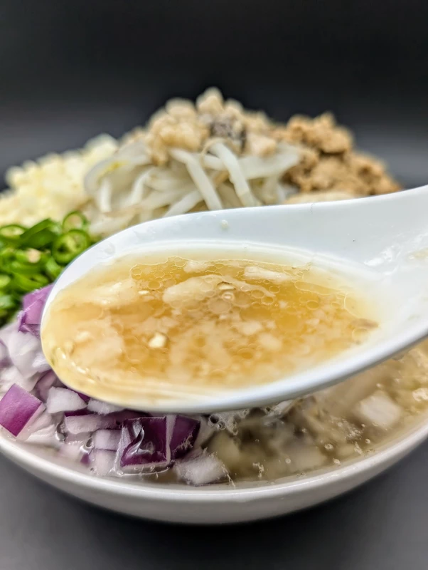スープは通常のラーメンのような醤油のキレたタイプとは異なり、旨味の主張が強く、