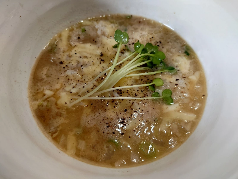 コラーゲンが多く溶け出しており、豚肉感は以前より穏やかで、バラ脂の濃厚な甘みが感じられるようになっています。