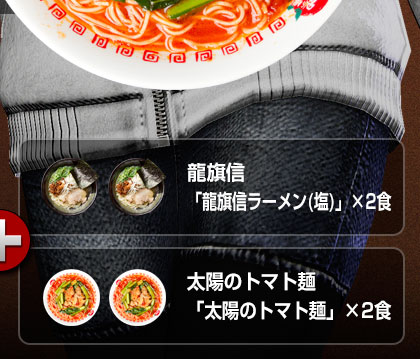 中華スープ(豚骨スープ、塩ダレ、チキンエキス)、トマトソース(トマト・トマトピューレ漬け)サラダ油、にんにく、香辛料)、鶏チャーシュー(鶏もも肉、焼き豚のタレ、唐辛子、生姜)、にんにく、オリーブオイル、黒こしょう) (原材料の一部に、卵、小麦、乳を含む) |